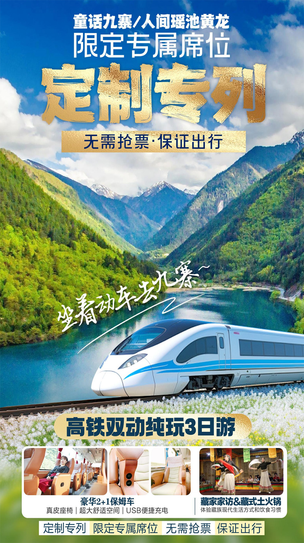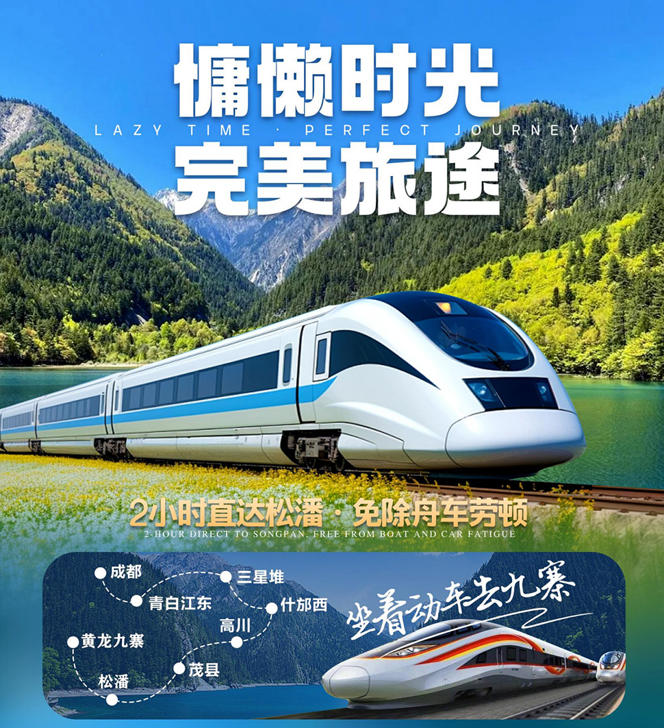 动车:成都站至黄龙九寨站(位于川主寺镇)或松潘站(位于松潘县),往返动车二等座车票;
